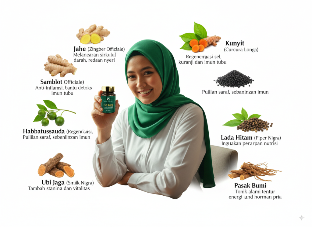 | Radix Eurycoma Longifolia (Pasak Bumi) | Meningkatkan energi, hormon testosteron, dan mempercepat pemulihan tubuh |